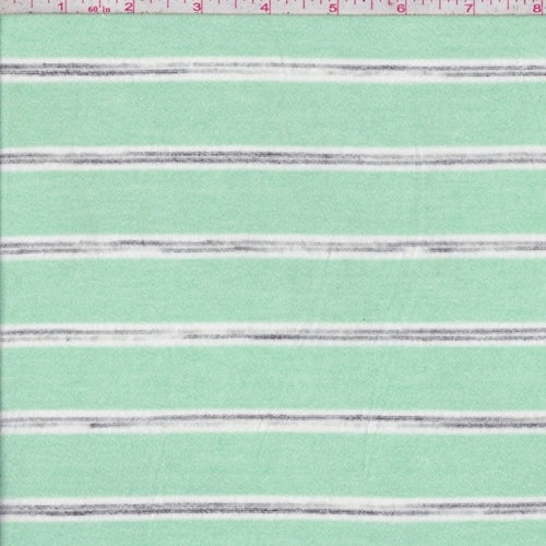 Mint/White/Black Stripe Rayon Jersey Knit Fabric