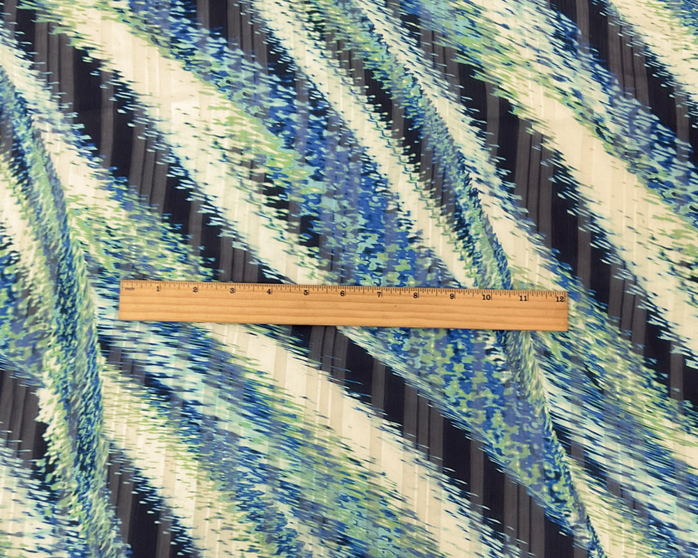 Blue-Multi Poly Abstract Print Satin Stripe Chiffon Woven Fabric