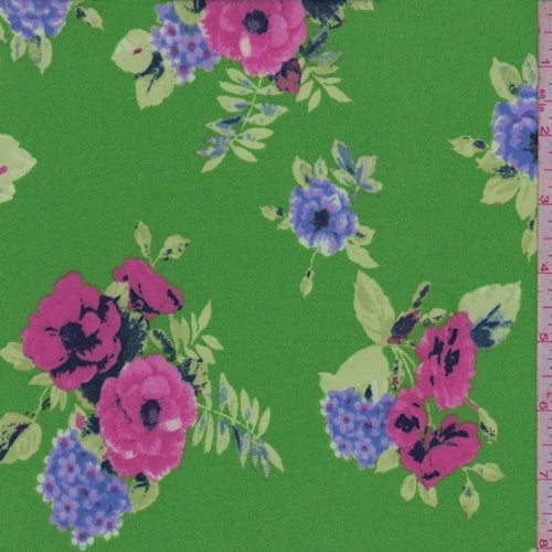Cricket Green/Pink Multi Floral Brushed Jersey Knit Fabric