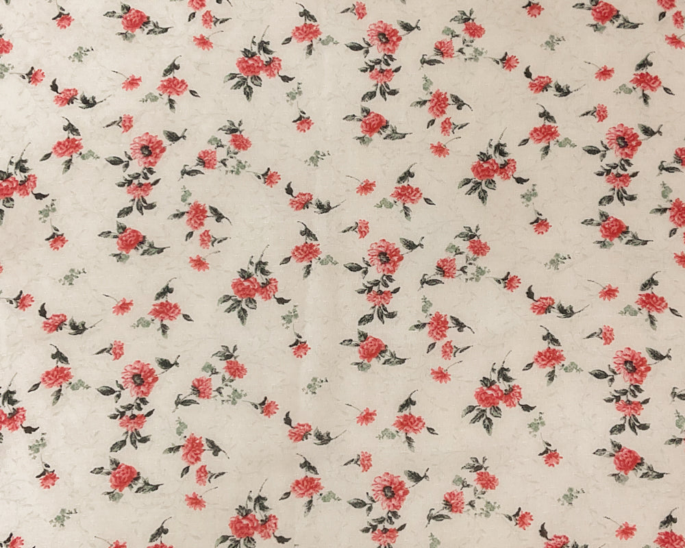 Ivory-Green-Multi Poly Floral Printed Dobby Chiffon Woven Fabric