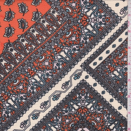 Ivory/Tangerine Multi Tile Pebble Crepe Fabric