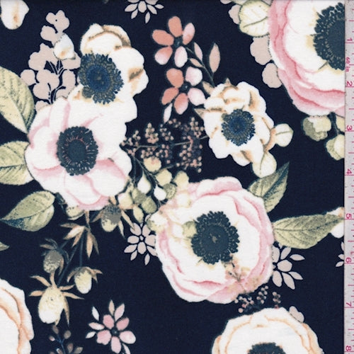 Midnight Multi Floral Bloom Brushed Jersey Knit Fabric