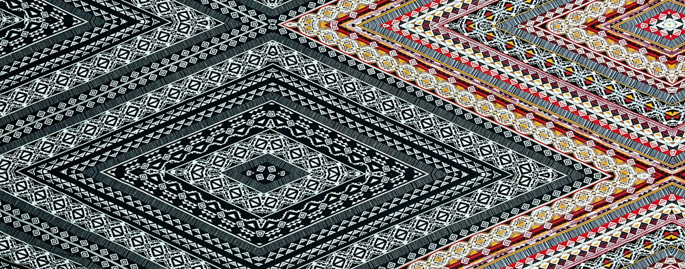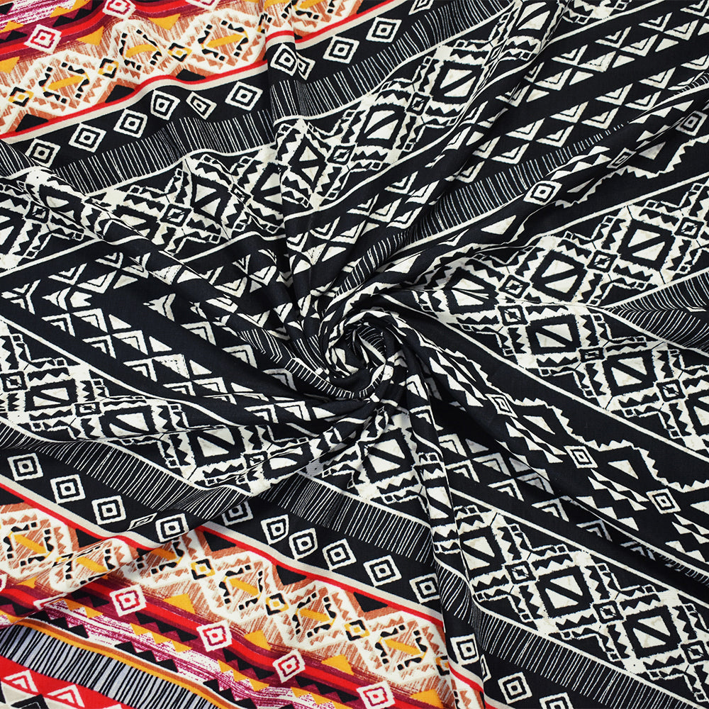 -Red-Black-Multi Poly Aztec Printed Faille Woven Fabric
