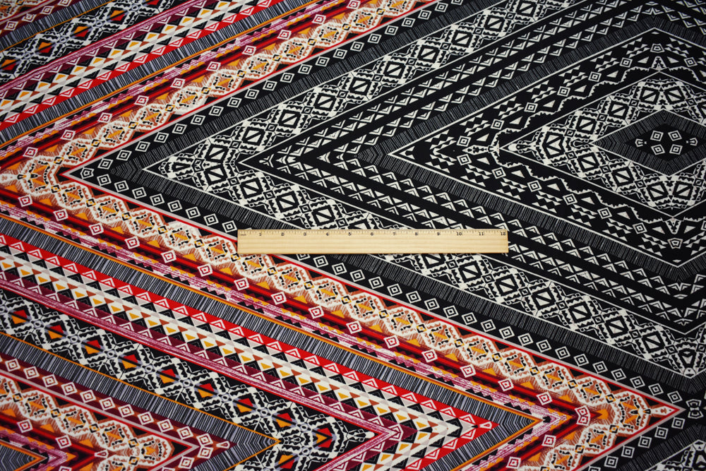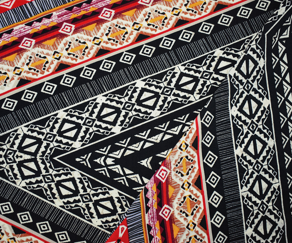 Red-Black-Multi Poly Aztec Printed Faille Woven Fabric