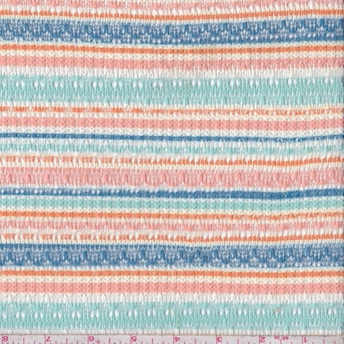 Salmon/Teal/Blue Stripe Pointelle Knit Fabric