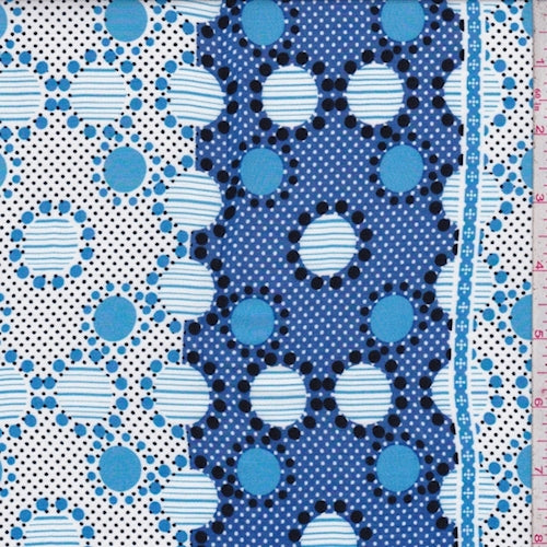 Sky/Blue/White Dot Stripe Rayon Challis Fabric