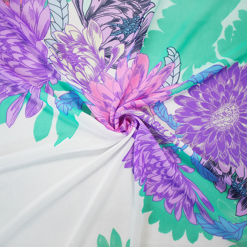 Turquoise-Pink-Multi Poly Floral Printed Chiffon Woven Fabric
