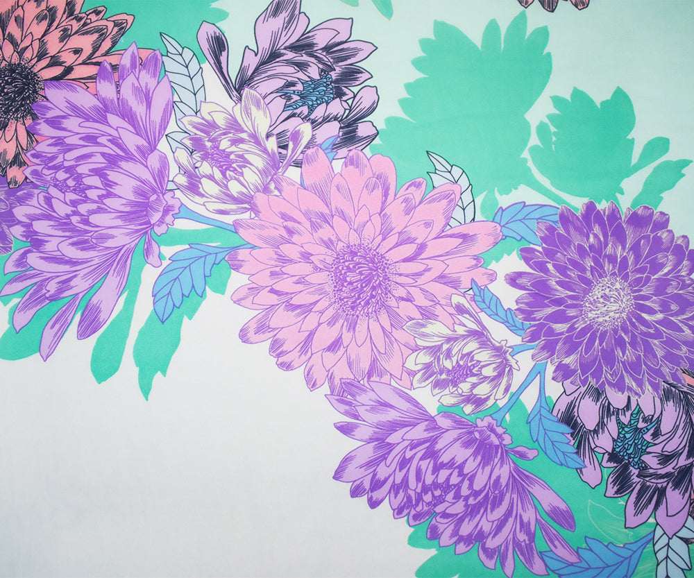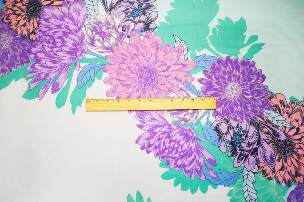 -Turquoise-Pink-Multi Poly Floral Printed Chiffon Woven Fabric