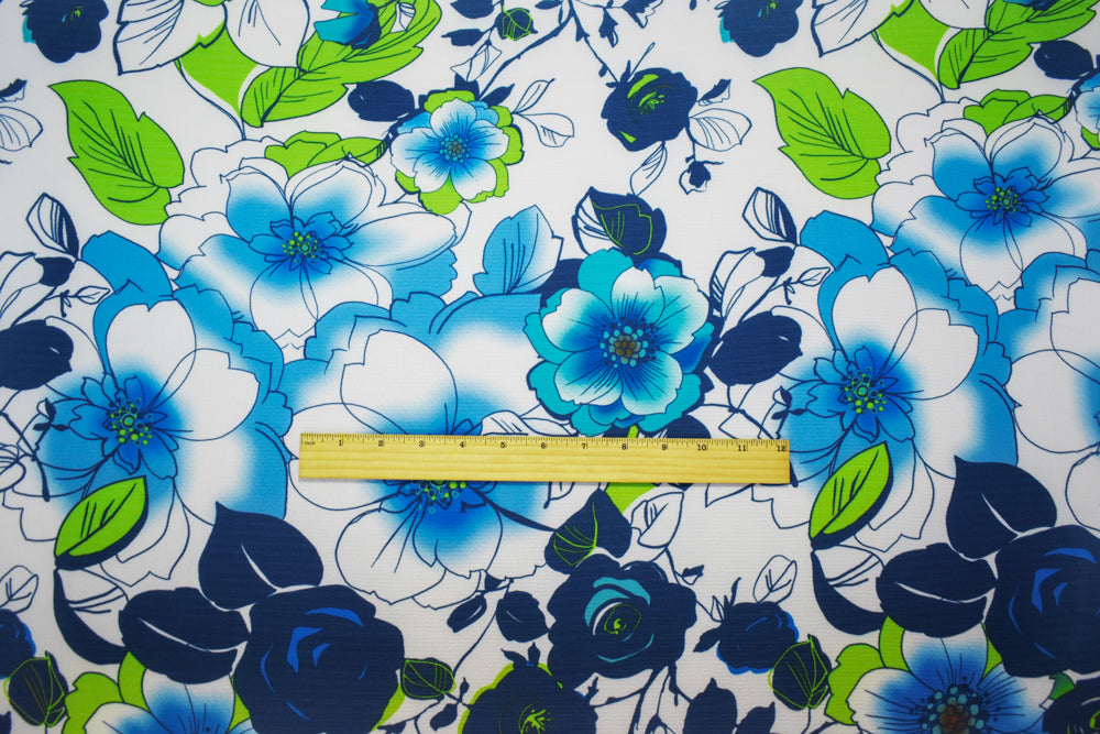 White-Blue-Multi Poly Floral Printed Pebble Crepe Woven Fabric