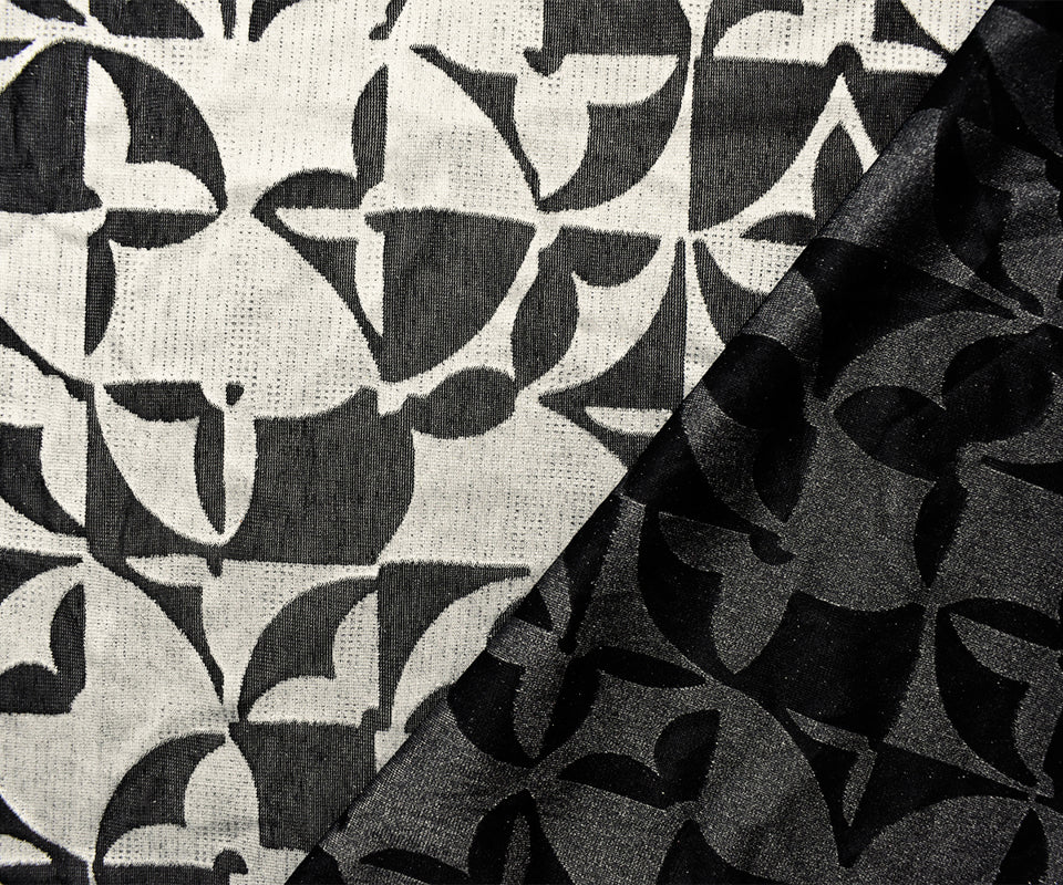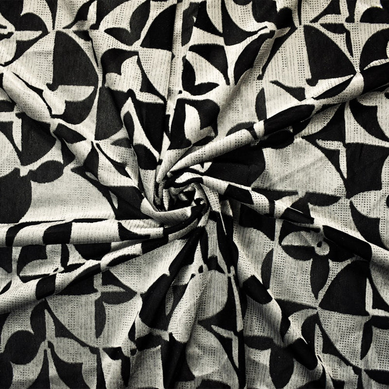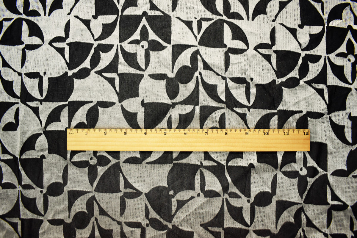 Silver-Black Rayon-Poly Abstract Burnout Velvet Mesh Knit Fabric