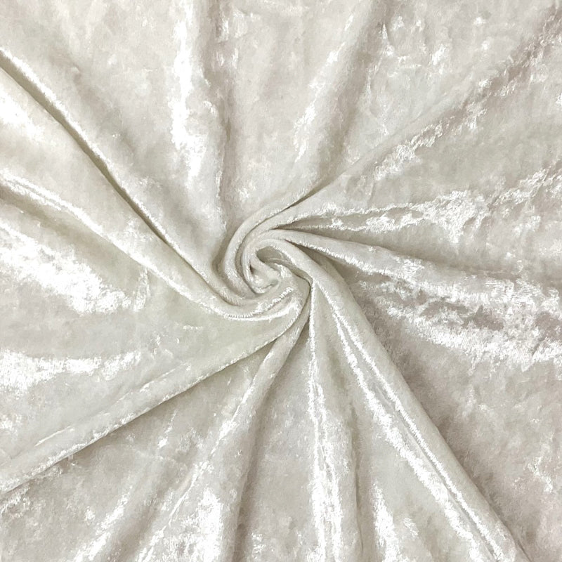 White Poly Spandex Stretch Crushed Velvet Knit Fabric