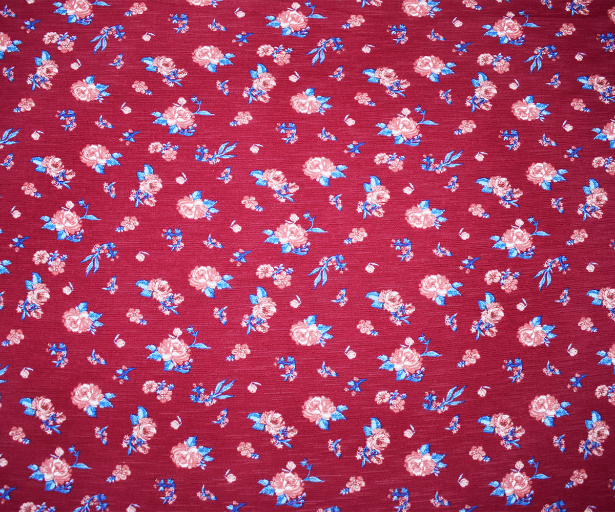 2 7/8 YD PC-Red-Blue-Multi Poly Stretch Spandex Floral Printed Slub Knit Fabric