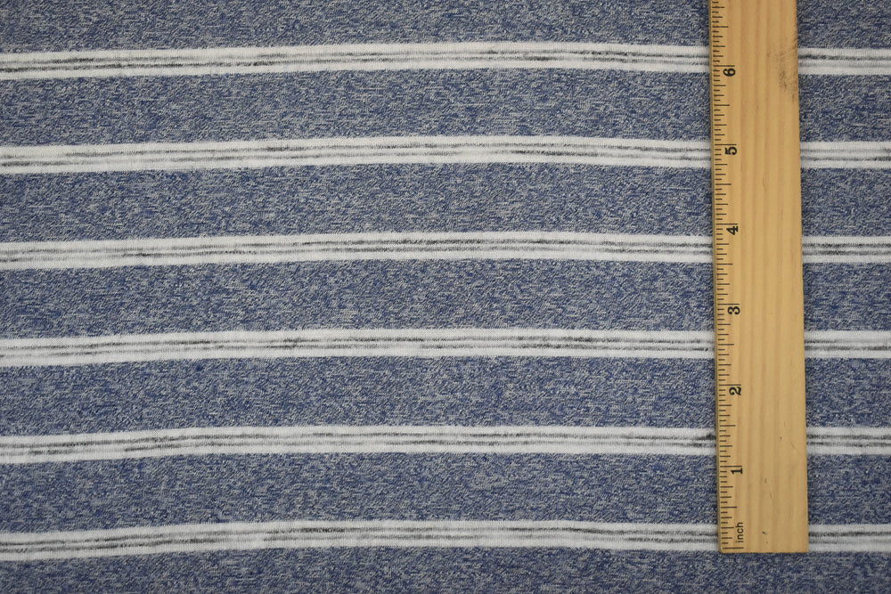 -Blue-White Poly Stretch Spandex Stripe Printed Jersey Knit Fabric