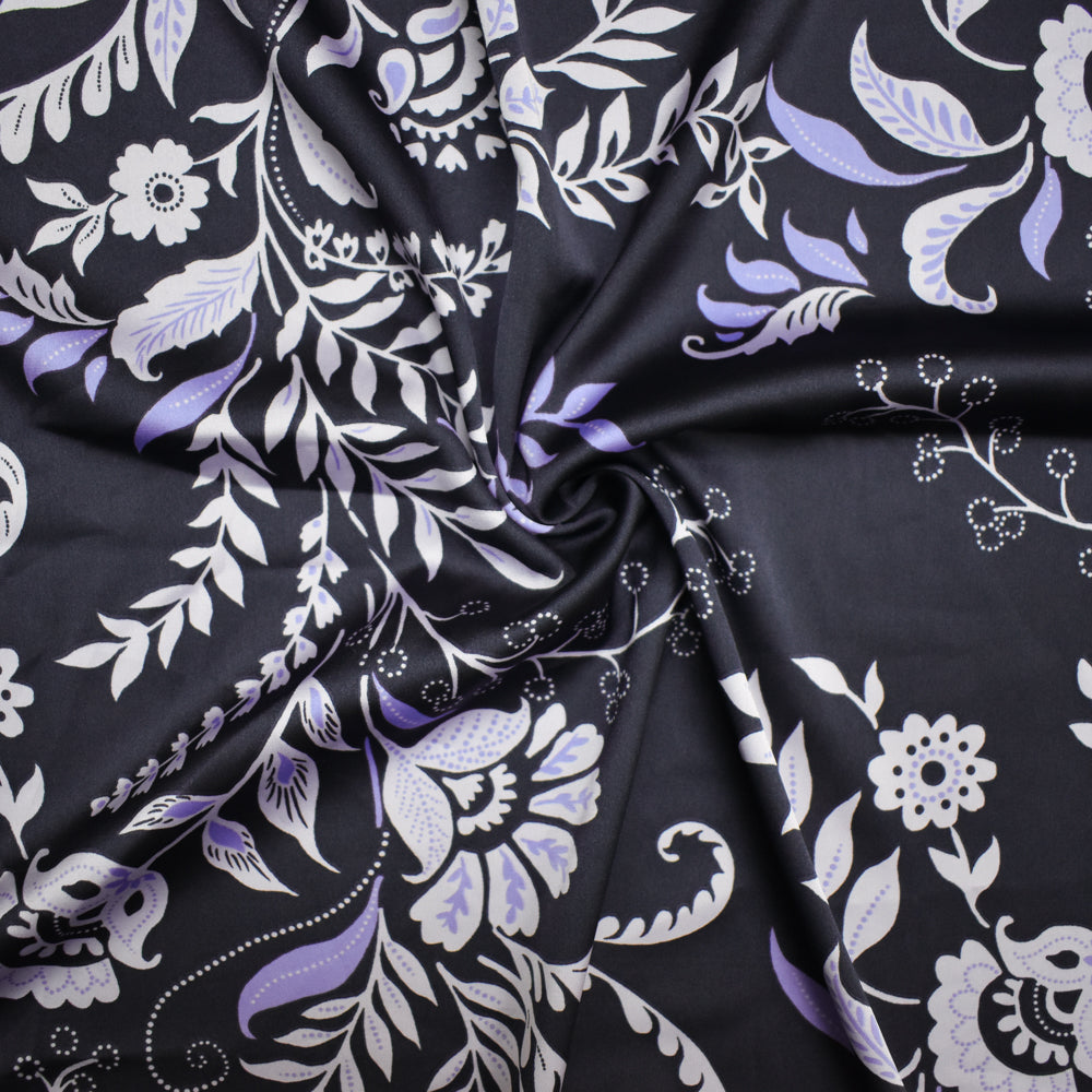 Deep Navy-Purple-Multi Polyester Floral Printed Charmeuse Woven Fabric