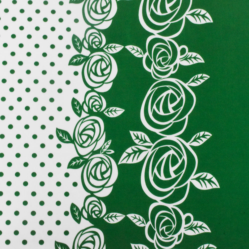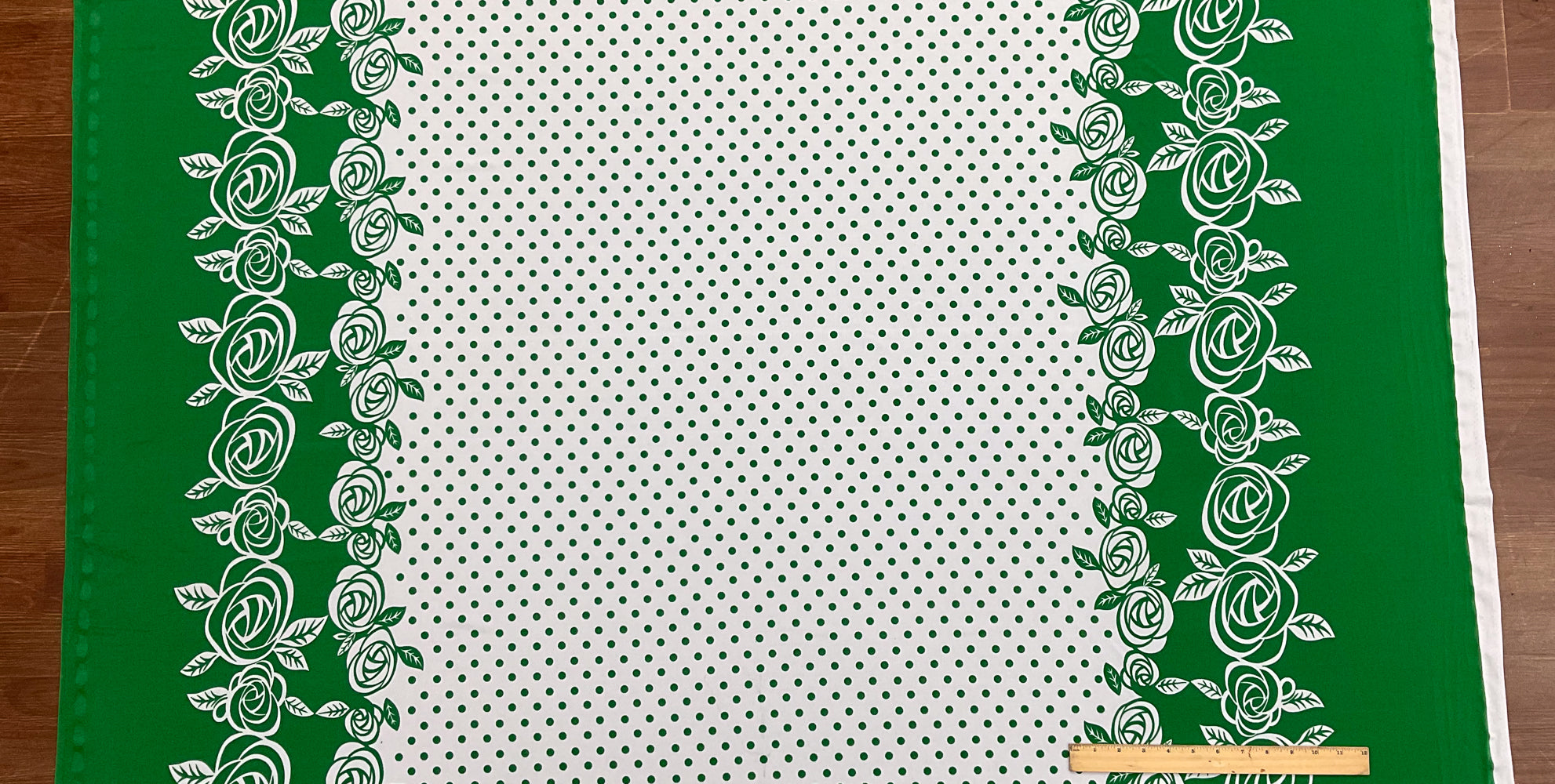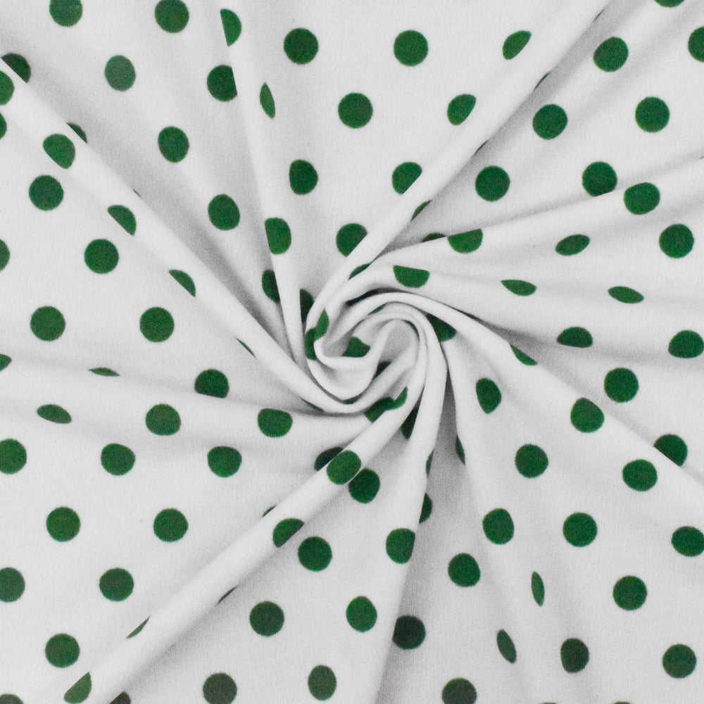 Green-White Dot With Floral Border Print Stretch Poly ITY Knit Fabric