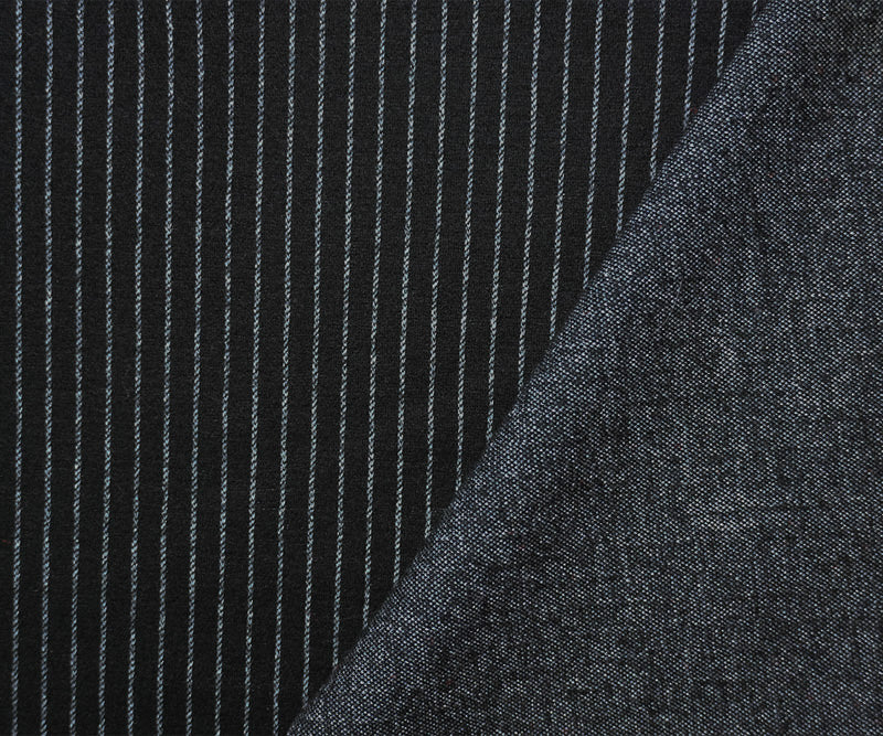 Black-Gray Wool Blend Stretch Stripe Jacquard Double Knit Fabric