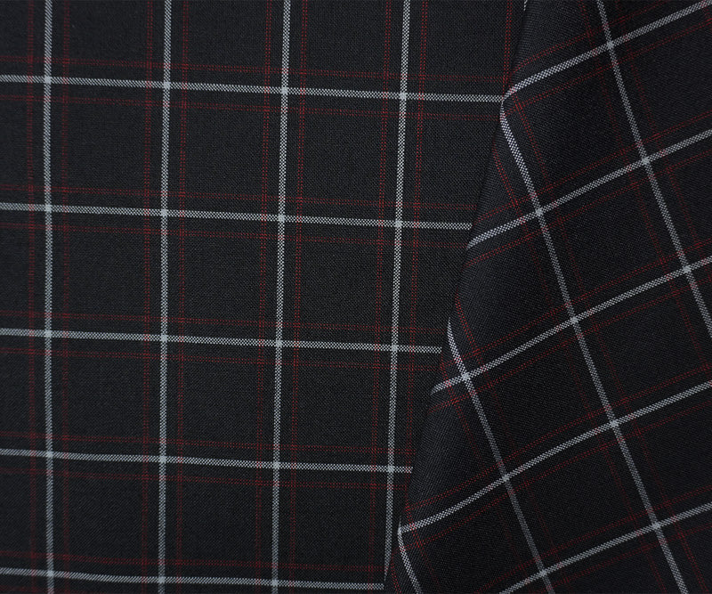 Black-Red-White Poly Wool Plaid Woven Suiting Fabric