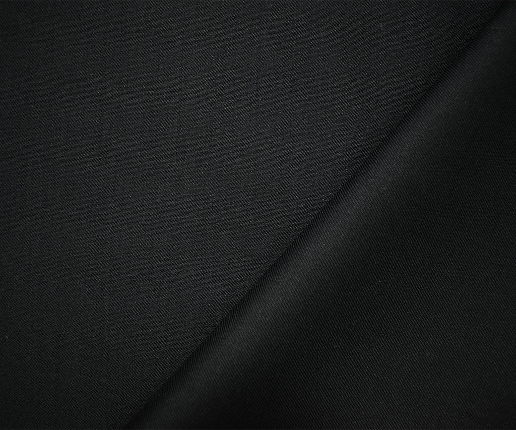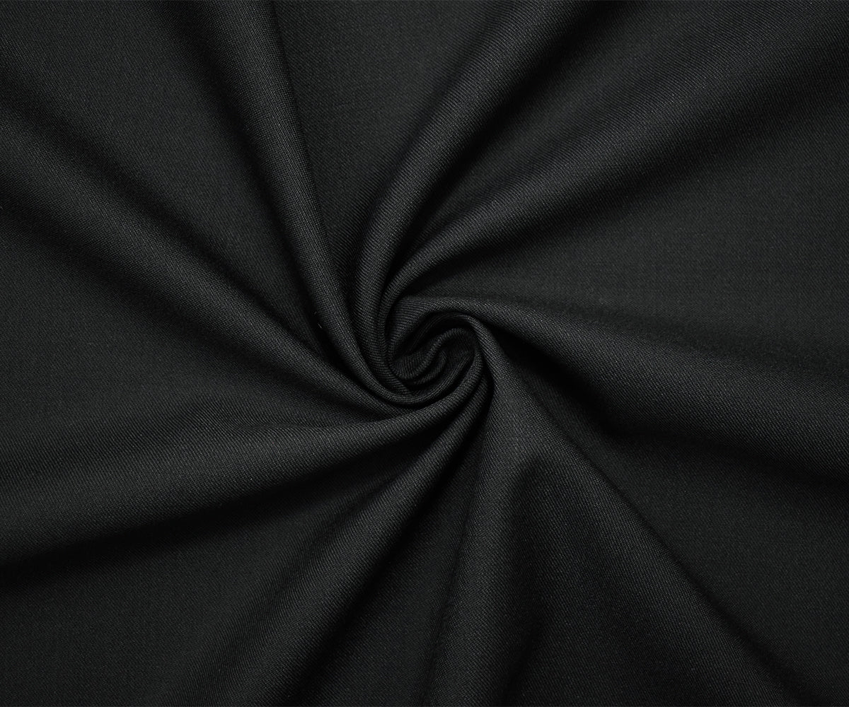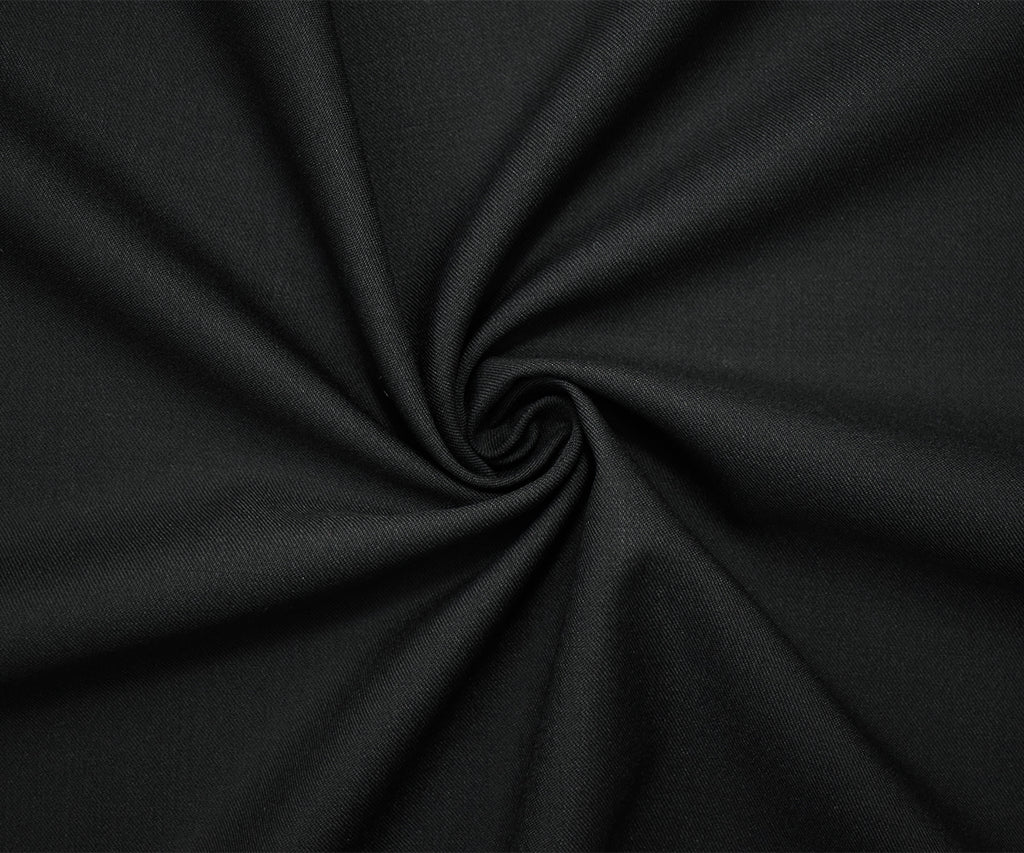 Black Wool-Poly Solid Black Twill Woven Suiting Fabric