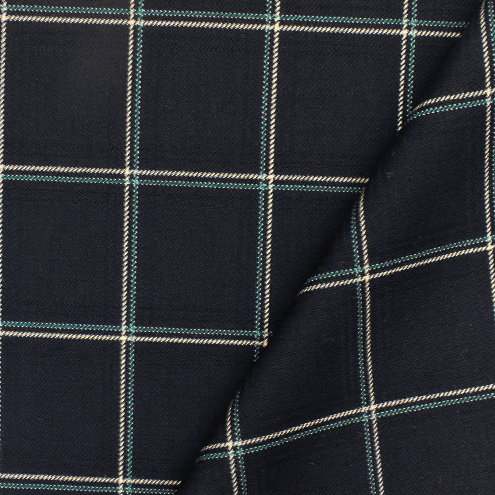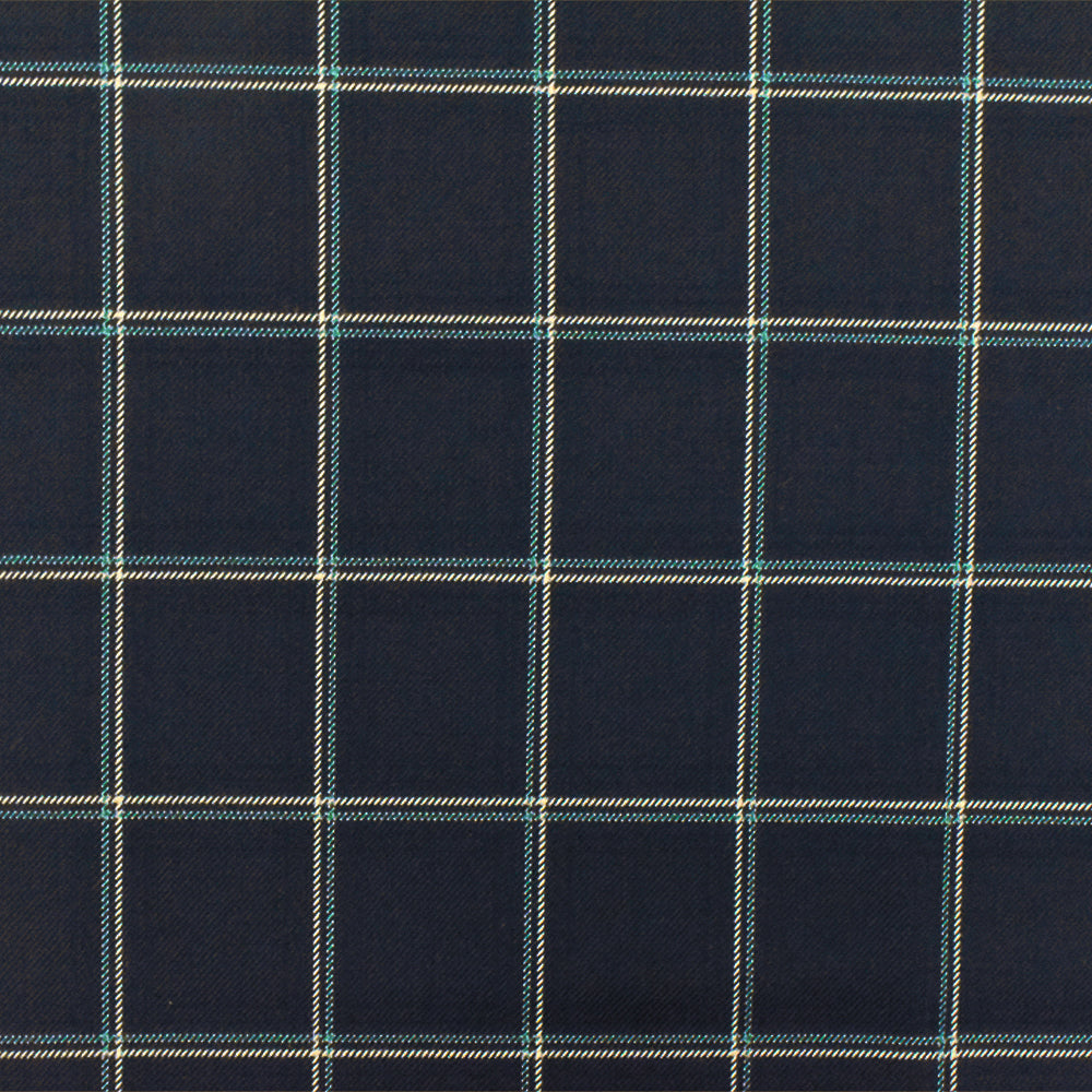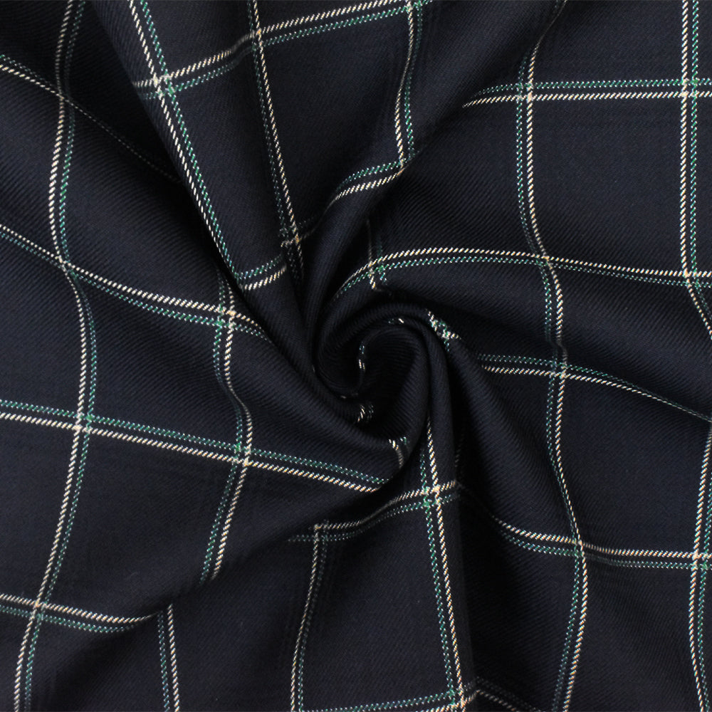 Deep Navy-Beige-Green Check Wool-Poly Twill Woven Suiting Fabric