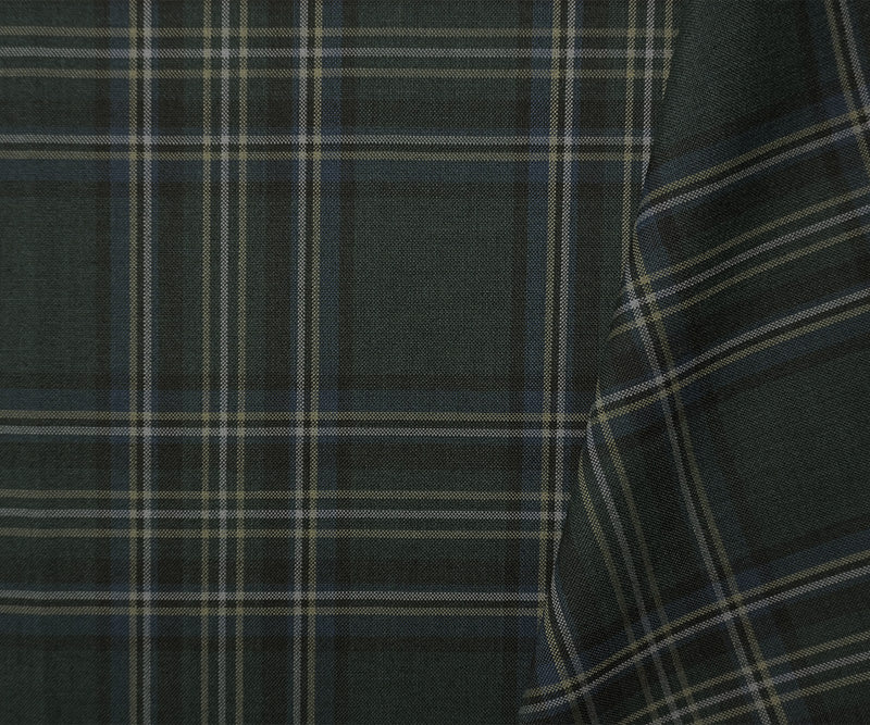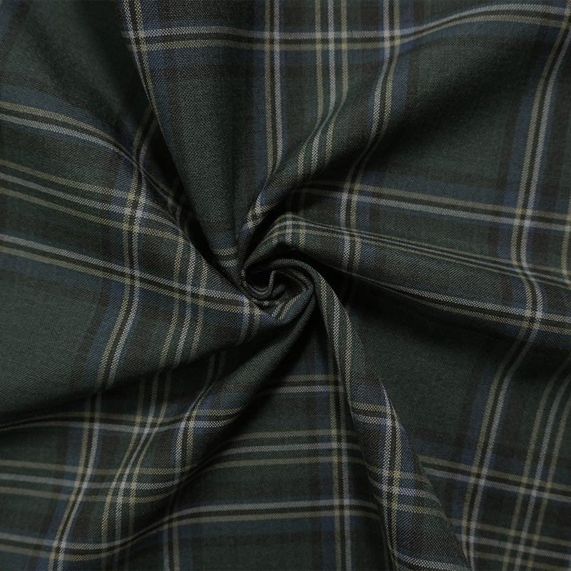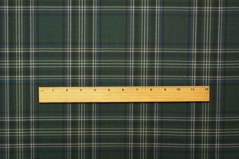Green-Multi Poly Wool Plaid-Check Japanese Woven Shirting Fabric
