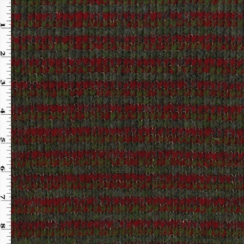 Red/Gray/Moss Wool Blend Textured Sweater Knit Fabric