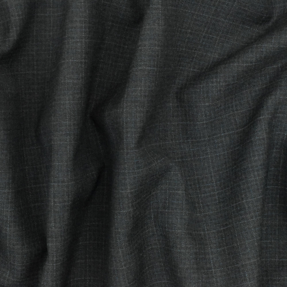 Shadow Gray-Blue-Gray Faded Check Wool-Poly Woven Suiting Fabric