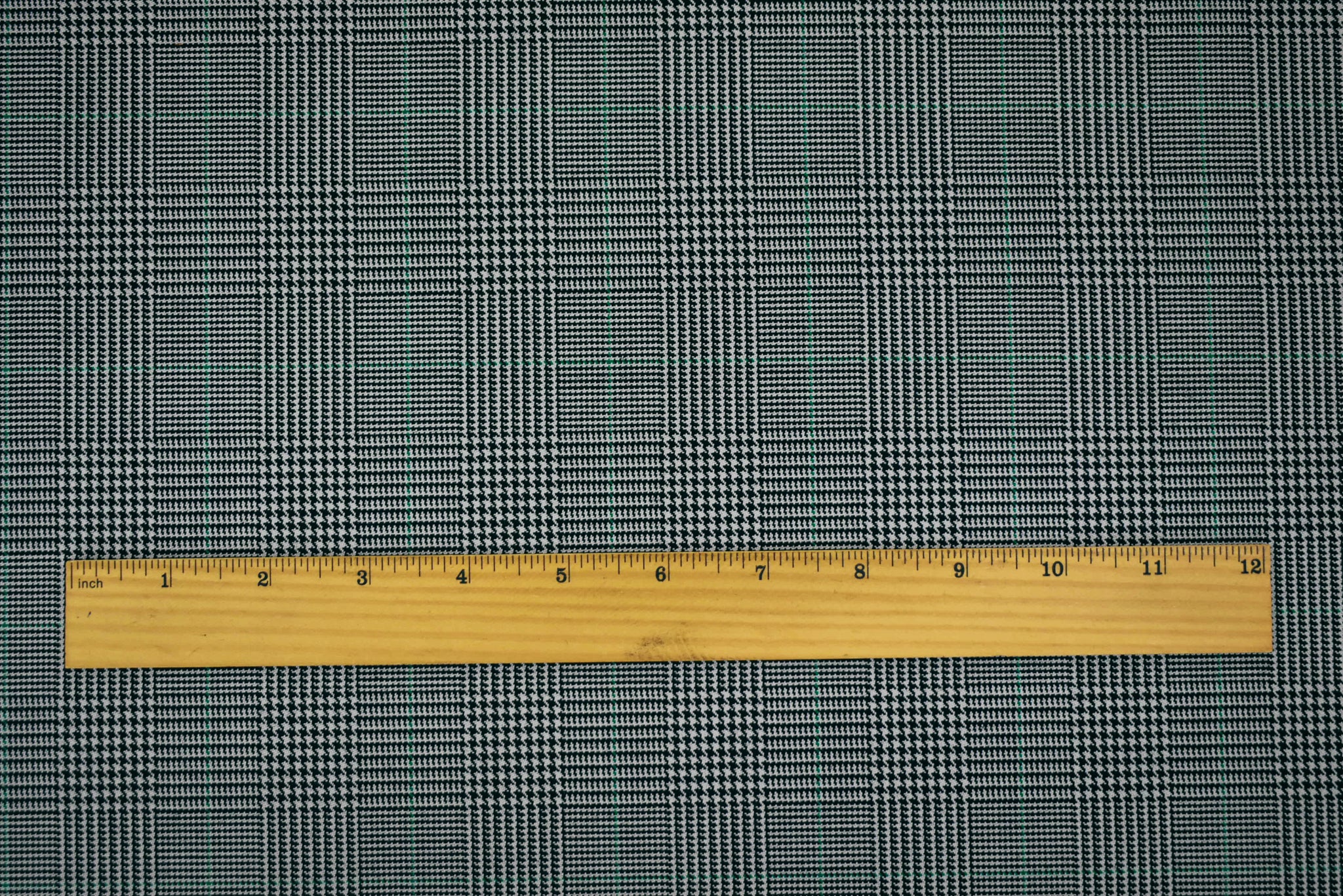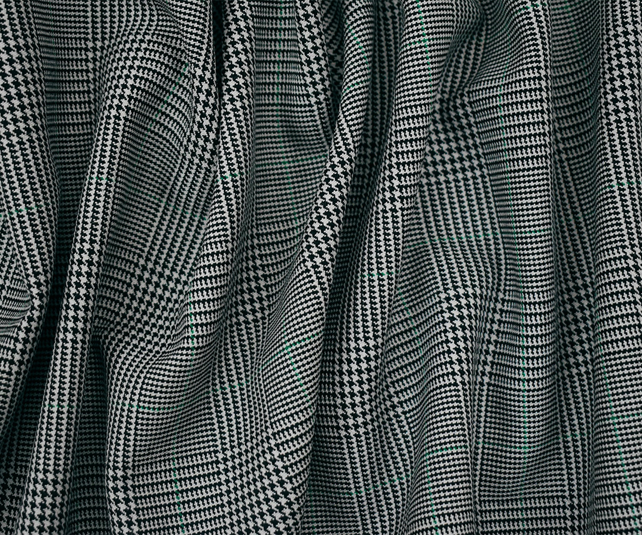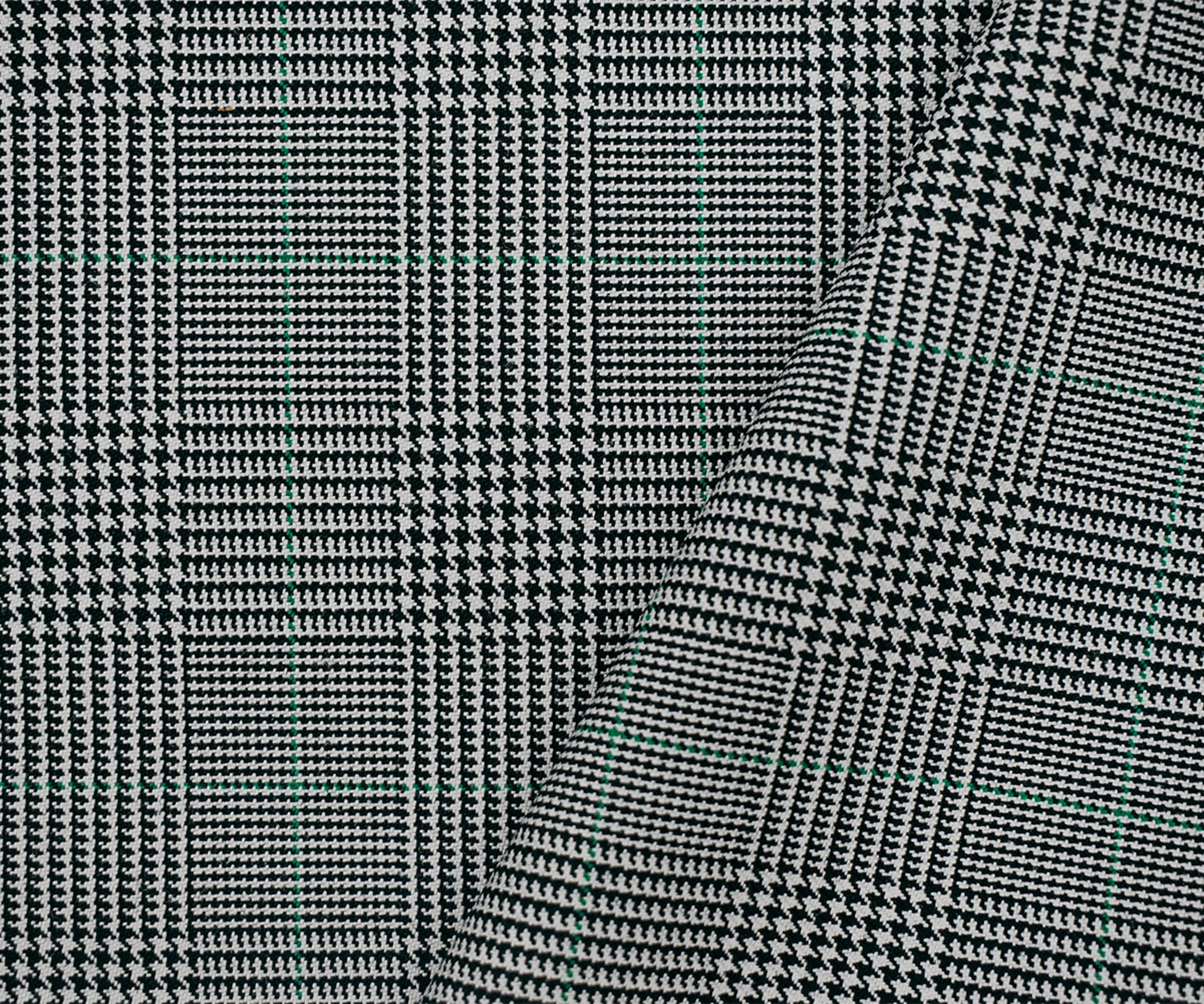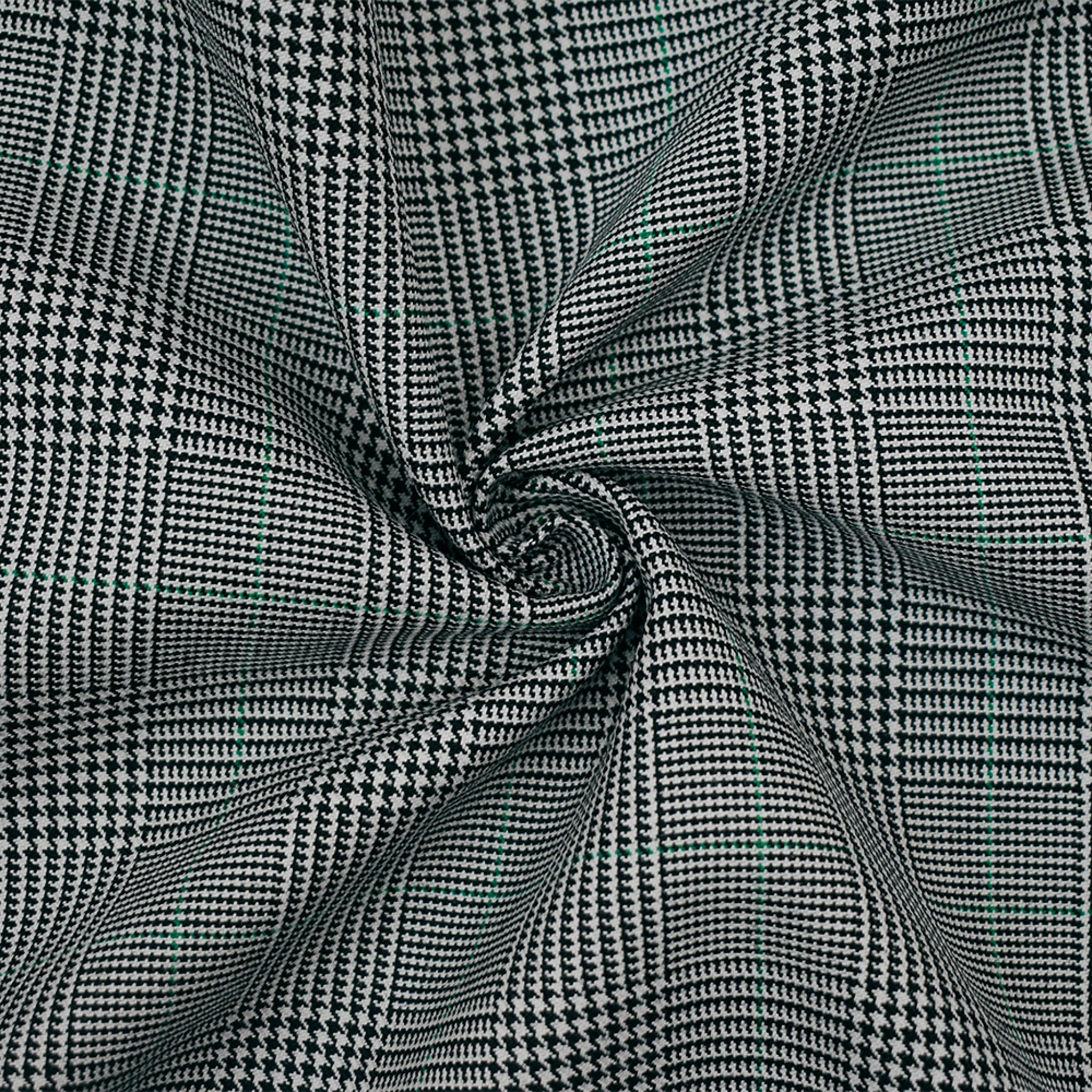 Black-Gray-Green Wool-Polyester Plaid Woven Suiting Fabric