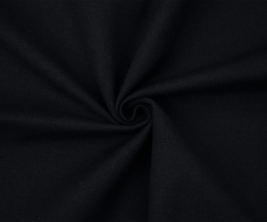 Black Wool-Cotton Solid Twill Jacketing Woven Fabric