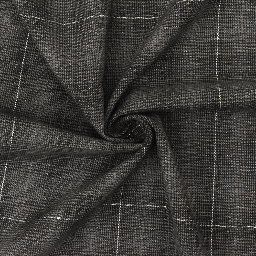 Black-Gray-Silver Plaid Grid Poly Metallic Shirting Woven Fabric