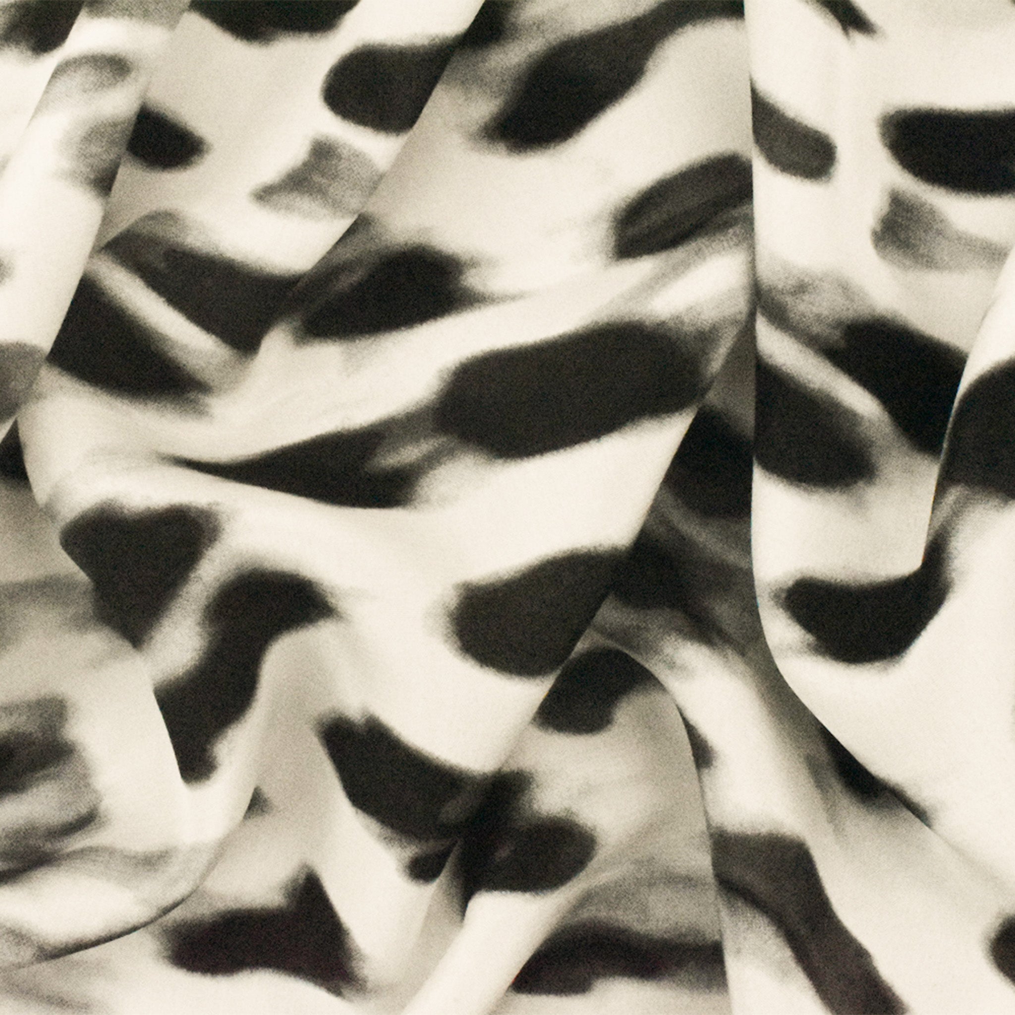 Black-Gray-White Famous Designer Silk Animal Printed Crepe De Chine Fabric