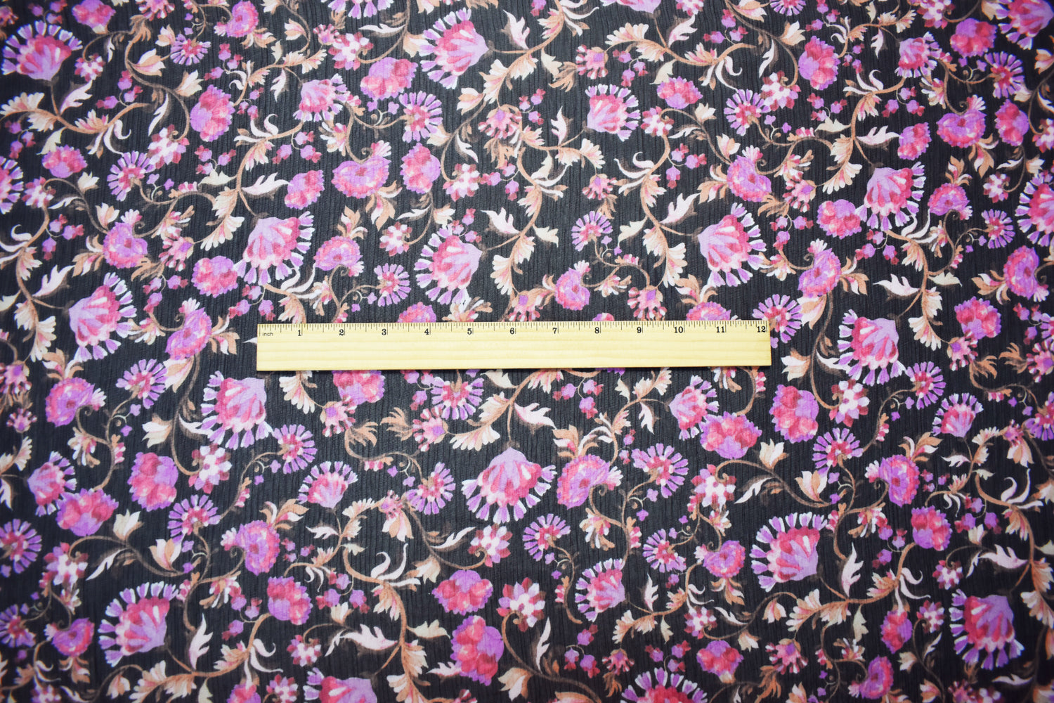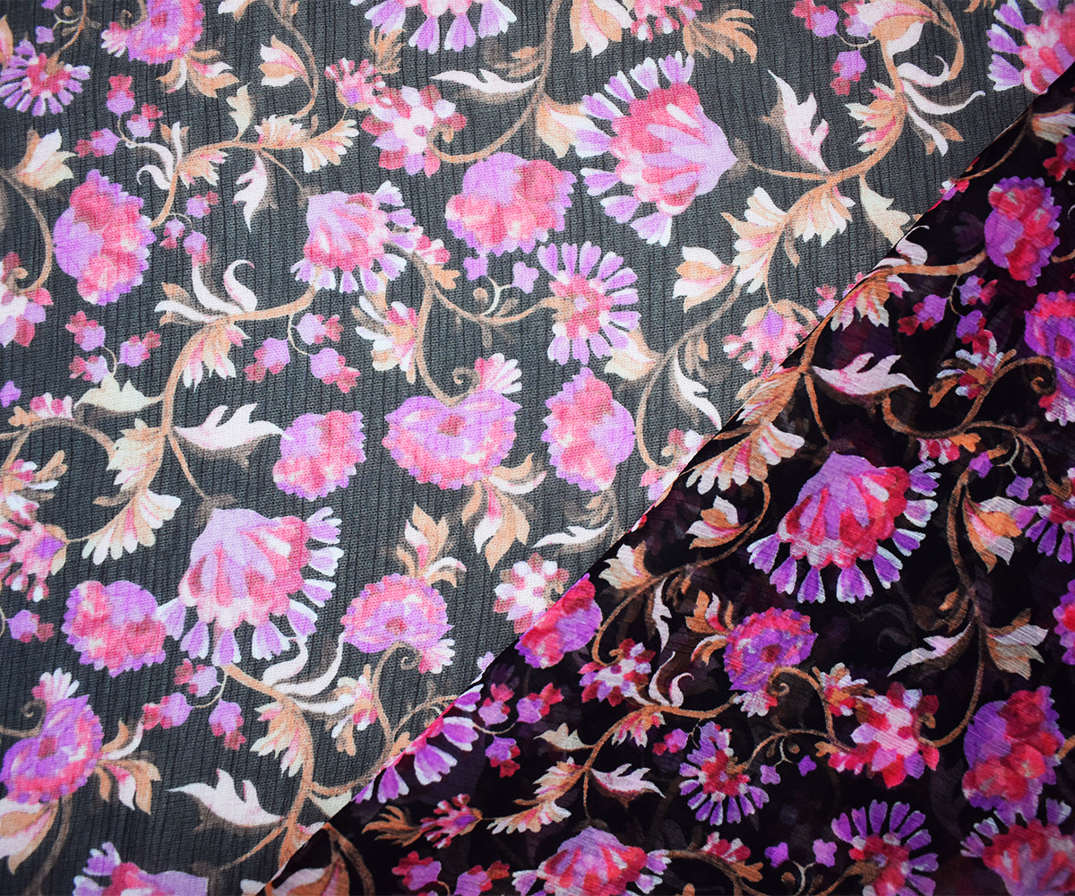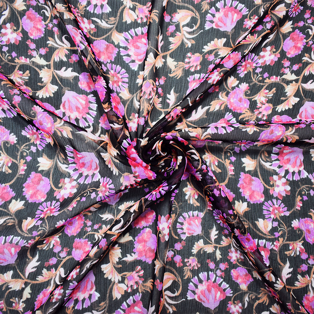 Black-Pink-Multi Poly Floral Printed Crinkle Yoryu Chiffon Woven Fabric