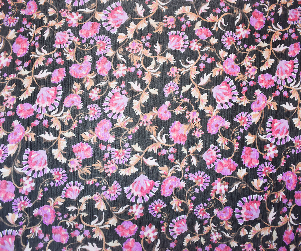 -Black-Pink-Multi Poly Floral Printed Crinkle Yoryu Chiffon Woven Fabric