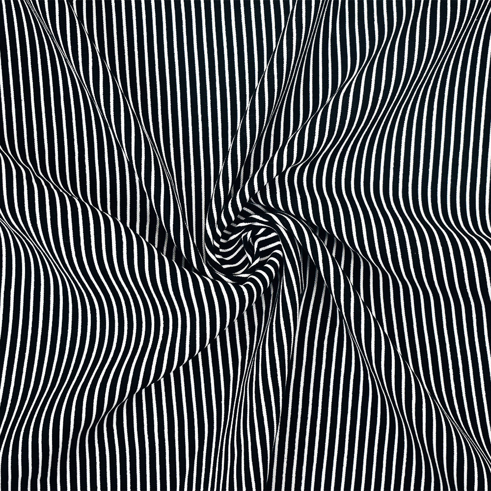 Black-White Stripe Printed Stretch Rayon Spandex Shirting Woven Fabric