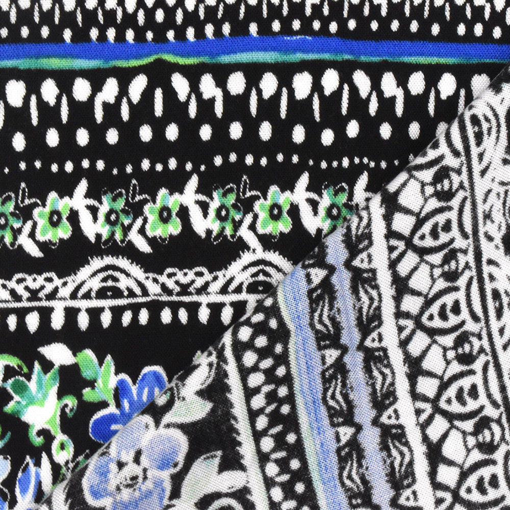 Blue-Green-Multi Stripe Floral Printed Rayon Challis Woven Fabric