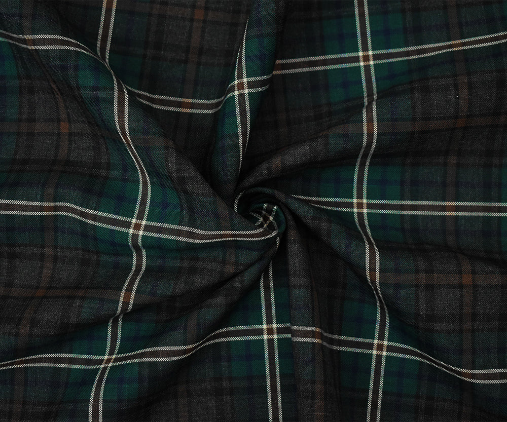 Brown-Green-Multi Wool Polyester Plaid Woven Shirting Fabric