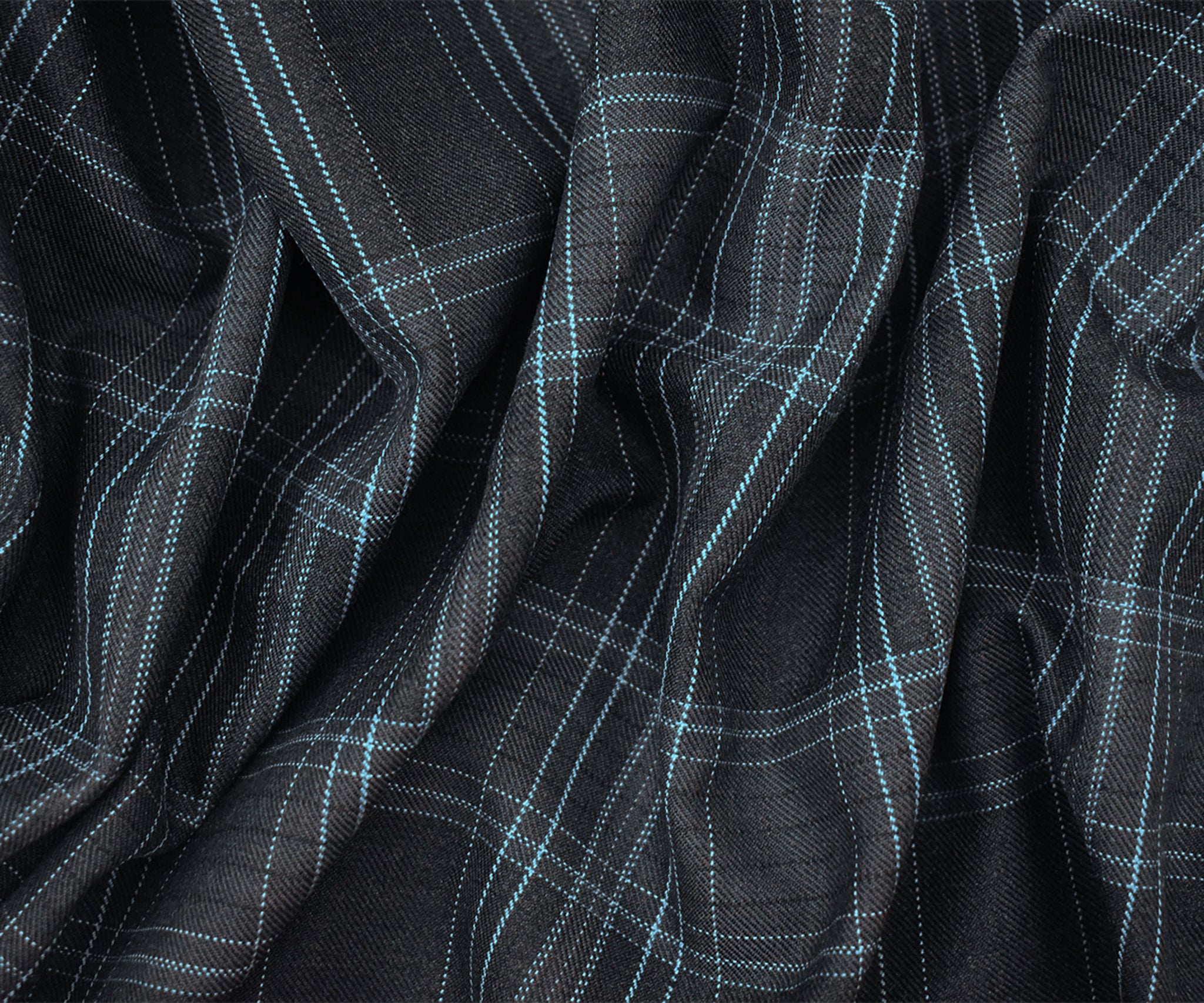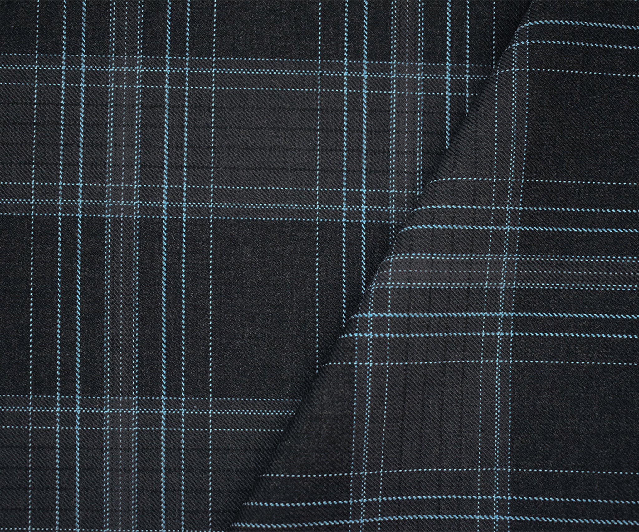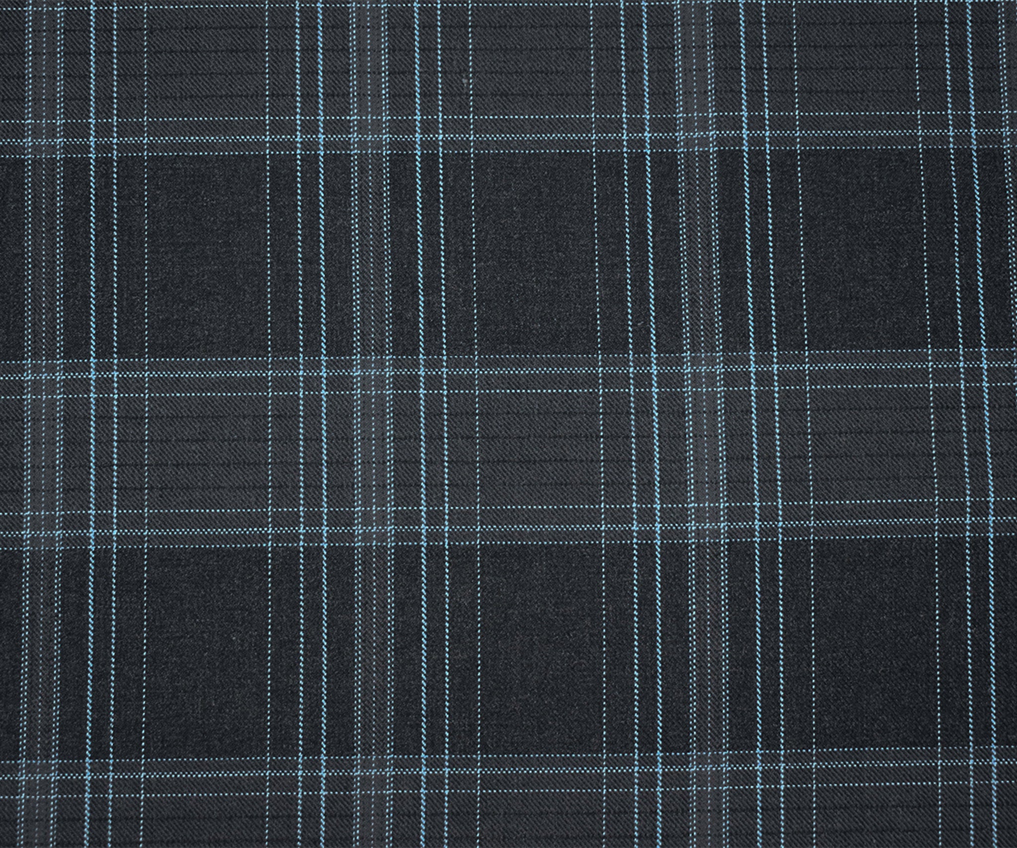 Deep Gray-Blue-White Poly Wool Plaid Woven Suiting Twill Fabric