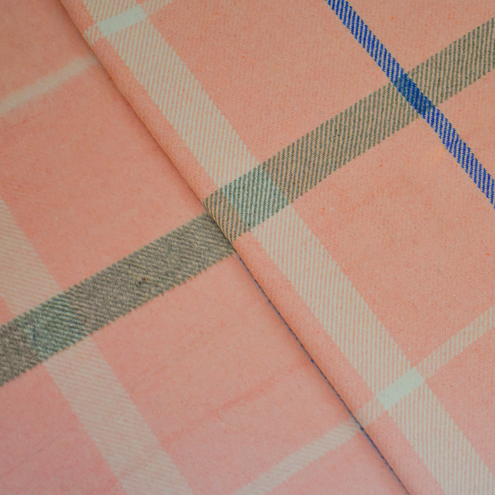 Pink-Multi Polyester-Wool Single Sided Brushed Plaid Twill Jacketing Fabric