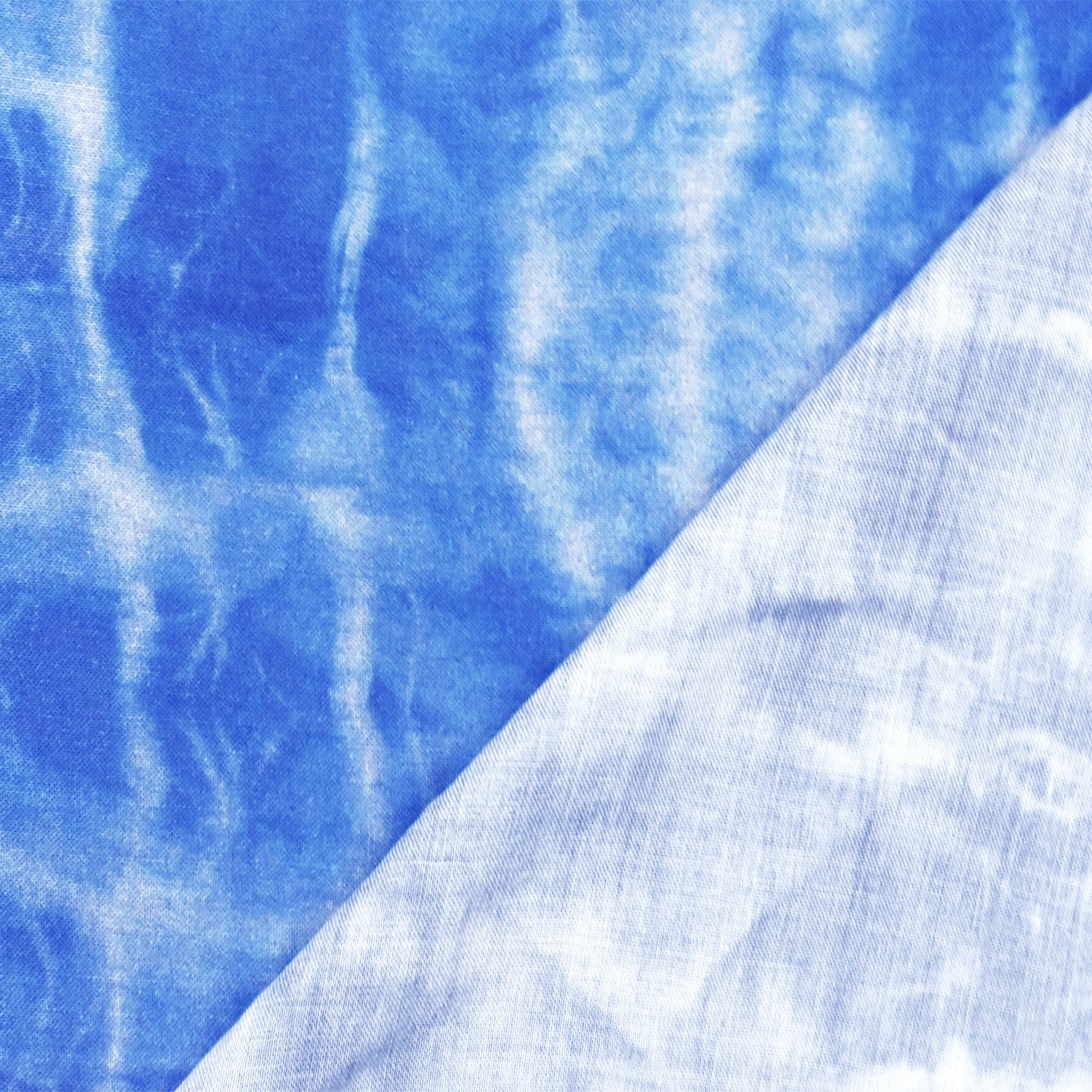 -Tie dye pool like pattern printed on a rayon lawn fabric