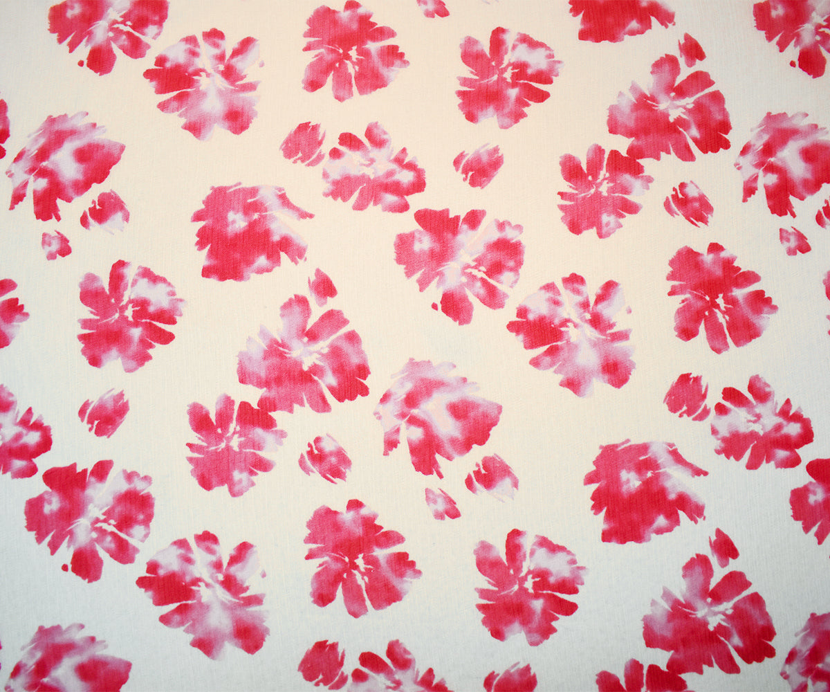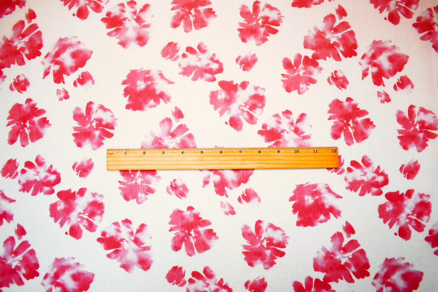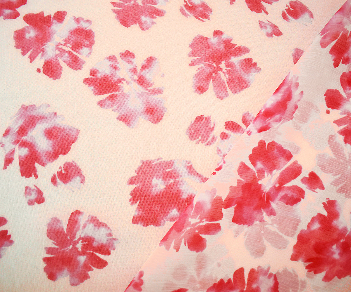 Red-Ivory Poly Floral Printed Crinkle Yoryu Chiffon Woven Fabric