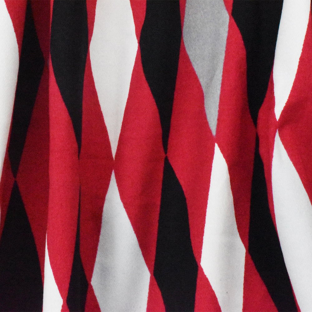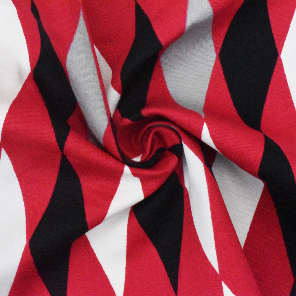 Red-White-Multi Diamond Printed Stretch Cotton Twill Sateen Woven Fabric