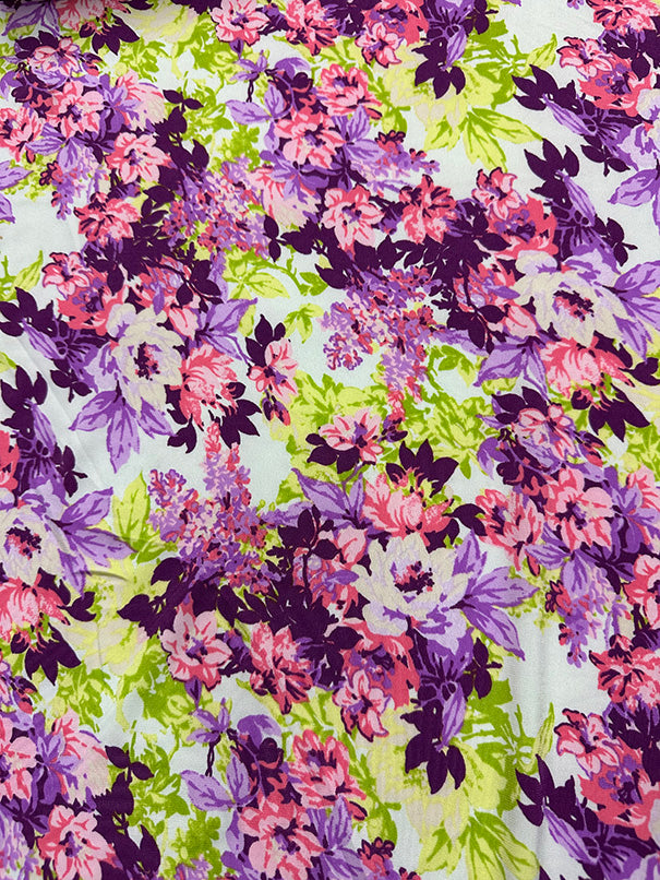 1 1/2 YD PC-Purple Multi Floral Print ITY Jersey Knit Fabric