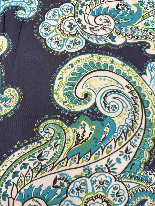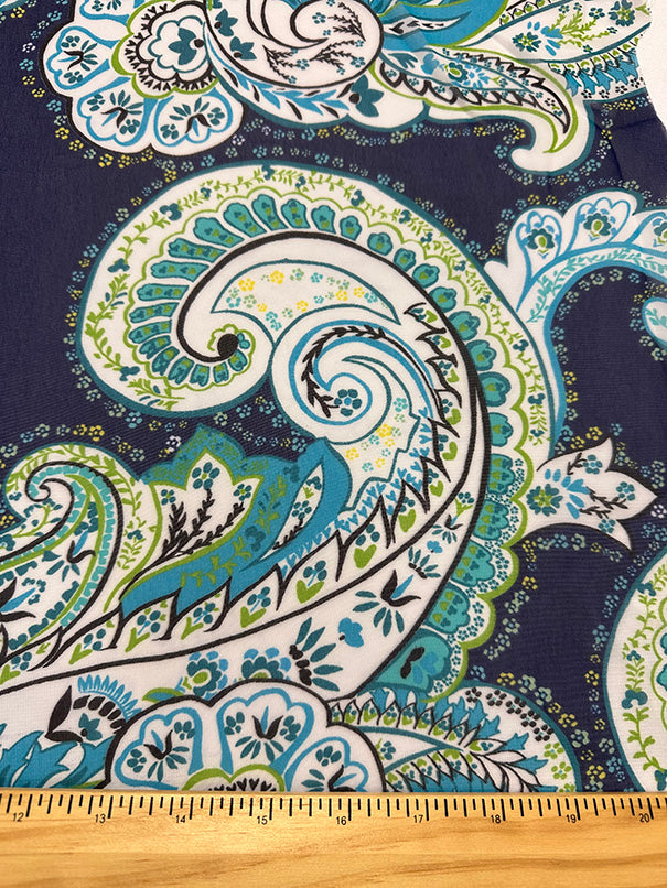 1 YD PC-Blue Floral Paisley Print Poly Chiffon Fabric