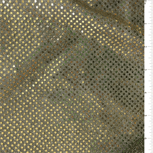 Metallic Black & Gold Knit Fabric With Metallic Gold Sequins Suitable for Blouses, Dresses, & Dancewear 80% Nylon 20% Metallic 43"-44" Wide
