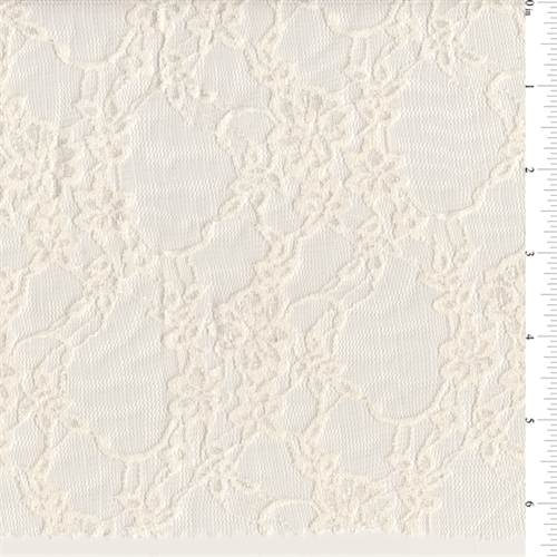 Ivory floral stretch lace fabric. This light weight sheer lace fabric has ample 4 way stretch and recovery.