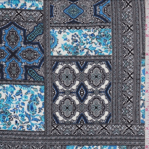 3 YD PC-Black/White/Blue Moroccan Block Crepon Fabric