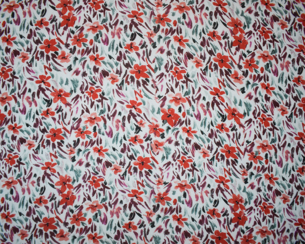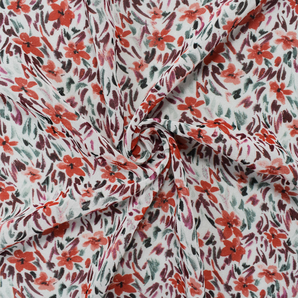 3 YD PC-Red-White-Green Poly Floral Printed Chiffon Woven Fabric