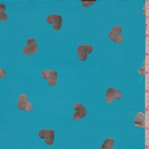 Aqua/Silver Heart Georgette Fabric