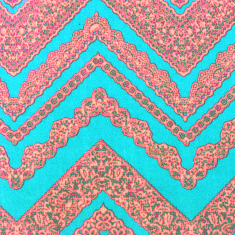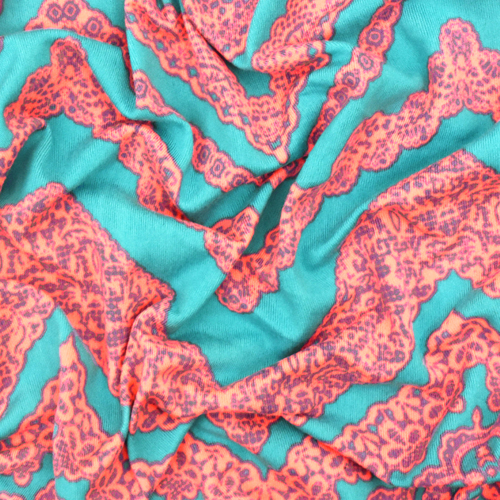 Aqua Teal-Neon Coral Lace Chevron Printed Double Brushed ITY Knit Fabric
