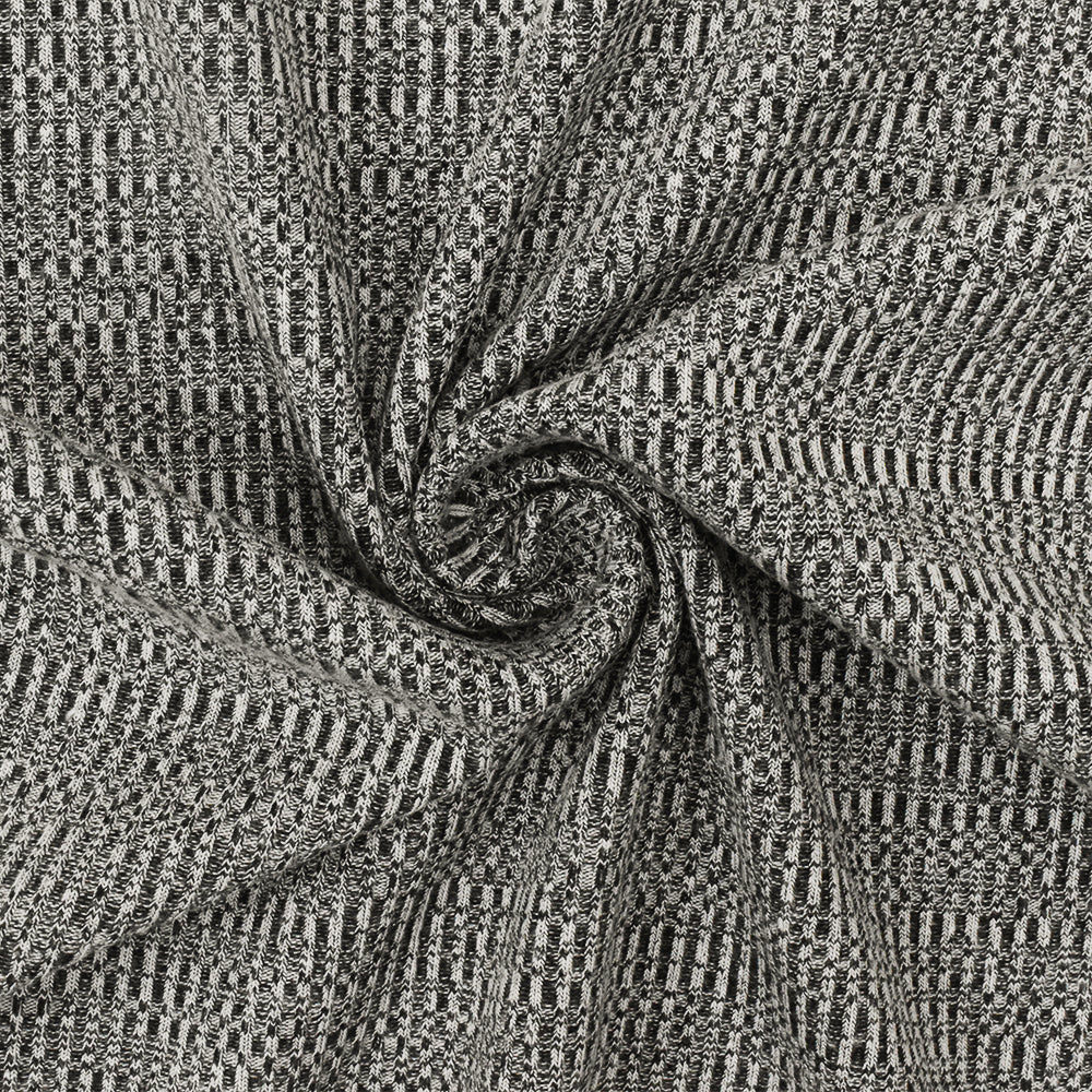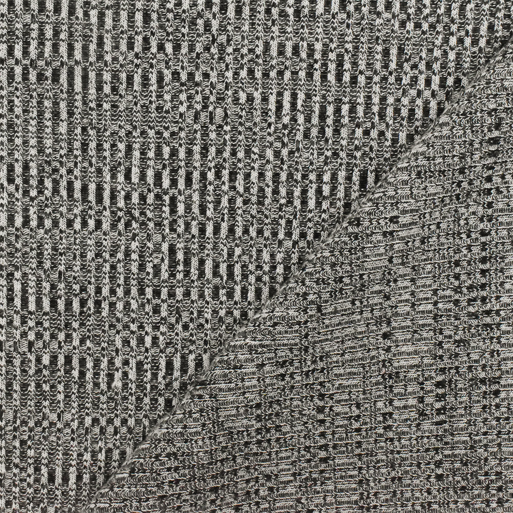 Ash White-Black Distorted Texture Stretch 2X2 Rib Knit Fabric