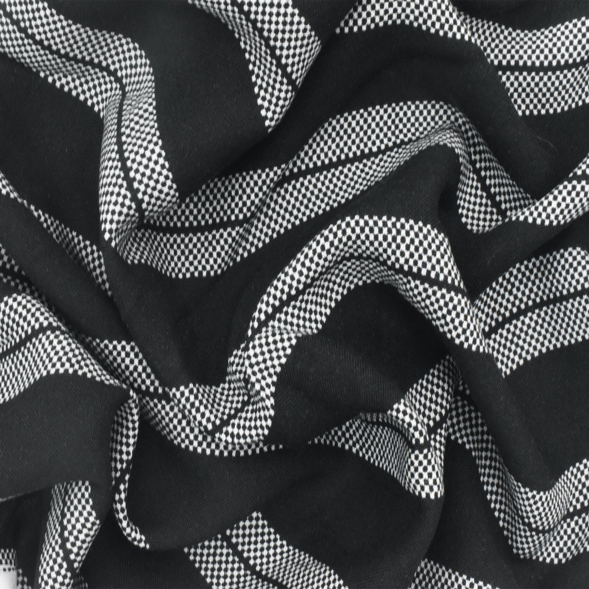 Basic Black-White Stripe Mini Check Printed Challis Woven Fabric